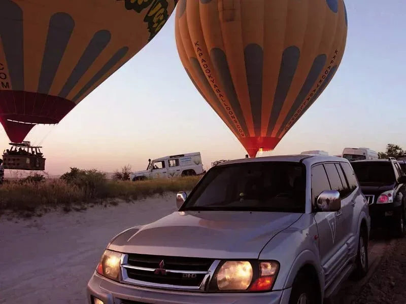 Uma incrível aventura seguindo o voo de balões de ar quente em um jipe, parando em pontos panorâmicos para tirar fotos deslumbrantes